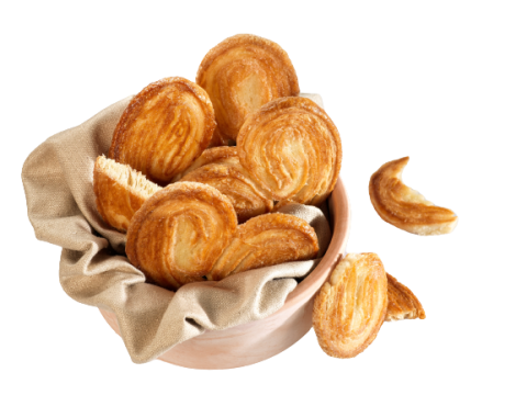 Frozen. Discover the French delight of palmier pastry, also known as an elephant ear. This delicate treat features golden, crispy puff pastry sprinkled with sugar, providing a perfect balance of crispiness and buttery tenderness. To serve with tea or as an elegant dessert. Instructions: Bake in a ventilated oven at 200°C for 15 minutes, then return and bake for an additional 5 minutes. Store for up to 48 hours at room temperature after preparation. Allergens: May contain Nuts, Soya, Eggs.