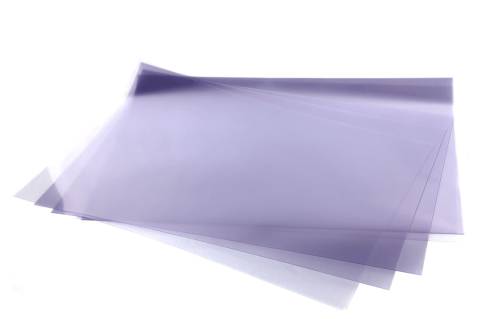 Dimensions: 600mm x 400mm. Acetate sheets are clear, rigid sheets that enhance the gloss of chocolate as it contracts away from their surface. Their non-porous nature ensures a high gloss, making them ideal for chocolate work. Acetate sheets are firmer than guitar sheets, allowing easy rolling and curving without the need for a PVC pipe.
