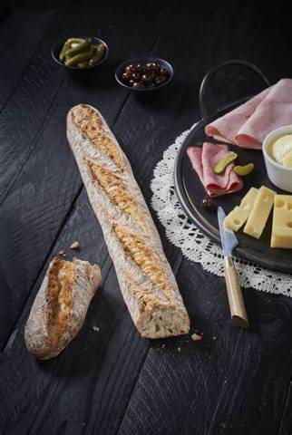Exceptional baguette, skillfully prepared with a blend of wheat and rye flours, combined with the distinctive Bridor leaven. Crafted exclusively from high-quality Label Rouge wheat flour.