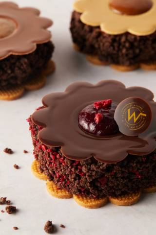 This couverture offers a brilliant brown colouring and clean sharp break. On the palate its tannins are very much present without being bitter, born by a light acidity and notes of red berry. It has a long and round finish.