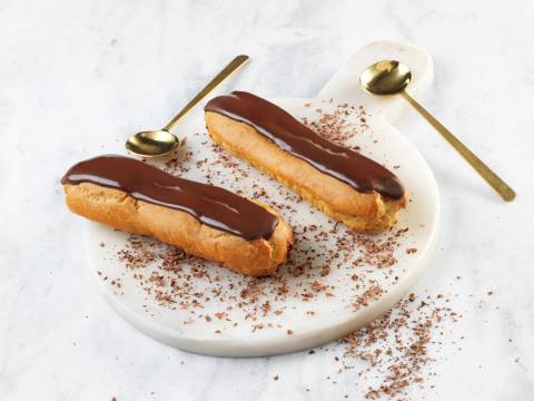 Our frozen chocolate éclair pastry is a delightful treat featuring choux pastry with a golden-brown shell.