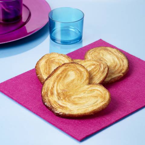 This delicate treat features golden, crispy puff pastry sprinkled with sugar, providing a perfect balance of crispiness and buttery tenderness. To serve with tea or as an elegant dessert.