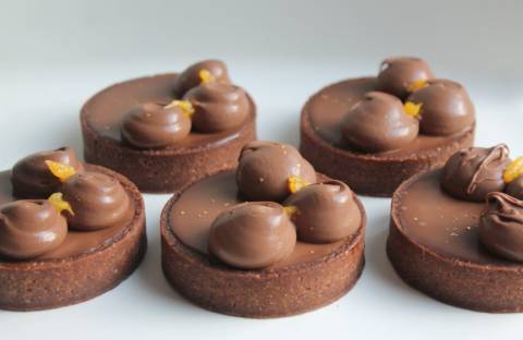 Chocolate tart shell. Made with NZ butter. Spray-coated with cocoa butter
