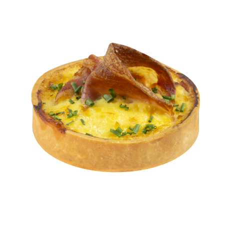 Savoury tart shell. Made with NZ butter. Spray-coated with cocoa butter.